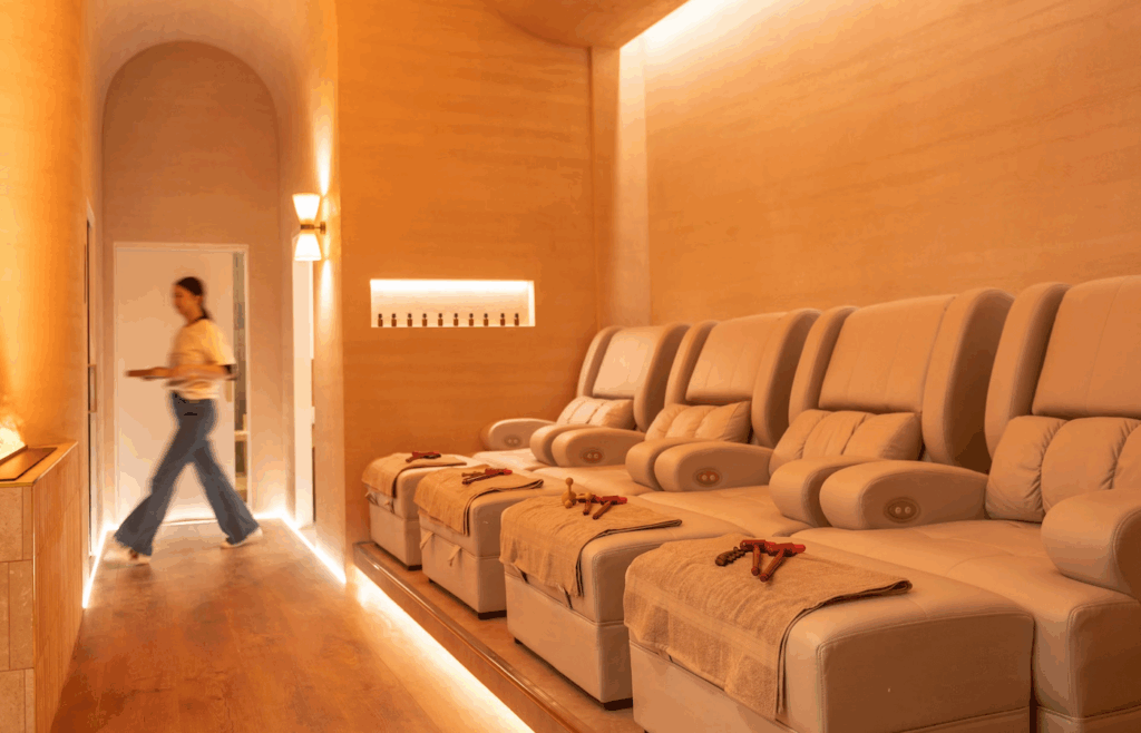 Visitors can choose between a Moroccan hammam steam room, rainfall showers with Japanese-style onsen tools, Finnish saunas, hot mineral baths and more, plus services to accompany these relaxing experiences like facials, Ayurvedic massage and hammam ritual treatment.